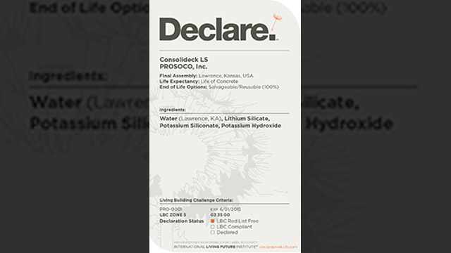 Consolideck® LS® receives Declare label for materials transparency