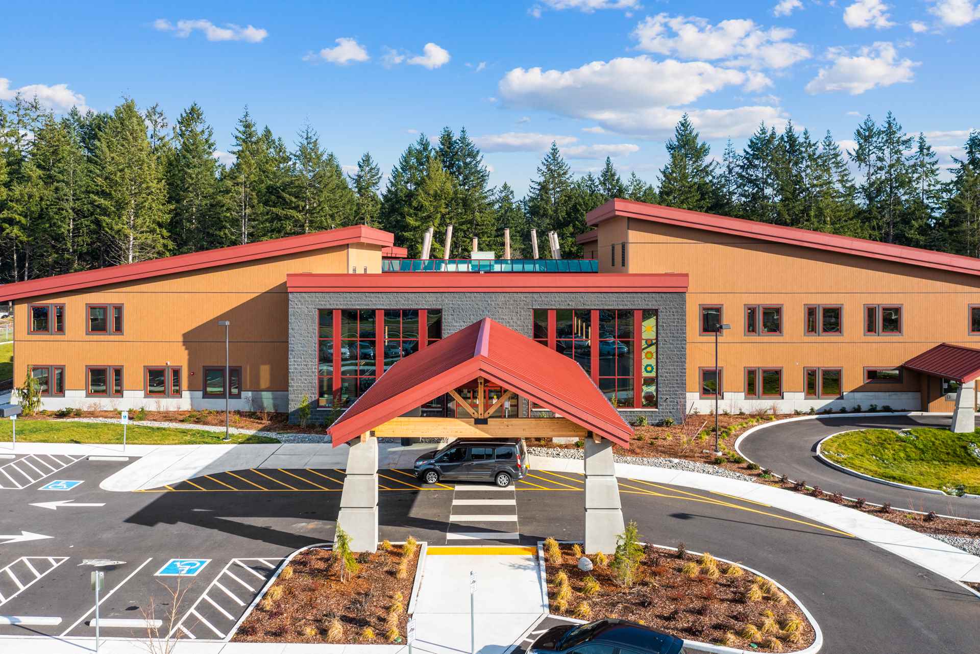 The Nisqually Health & Wellness Center is a project that the wonderful team here at Warfield Masonry completed in 2020. Built on the Nisqually Reservation (near Olympia, Washington), this project incorporates a variety of masonry materials into its tribal