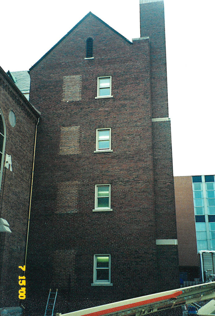 Attention is in the details for any successful project, and it is important in this Case Study that we were able to document what the newly stained brick looked like 21 years ago. The Masonry Cosmetics Team’s photography was not as advanced then as it is today, but it did capture the results of our extensive work at that time. We went back in 2019/2020 to retake pictures showing how our project still looks today. Examples are given here illustrate the before, during, and after stages of the project 21 years ago, along with current photos of that building today, proof positive of the longevity success of the Proven Masonry Stain.