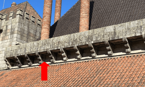 The palace has changed over the centuries. Damaged areas were rebuilt; the rear was rebuilt from a one-story section that we see today. Only four chimneys are original and functional, the remaining ones were installed in the 1937 renovation and do not function. Figure 13 shows various chimneys from the interior courtyard.
