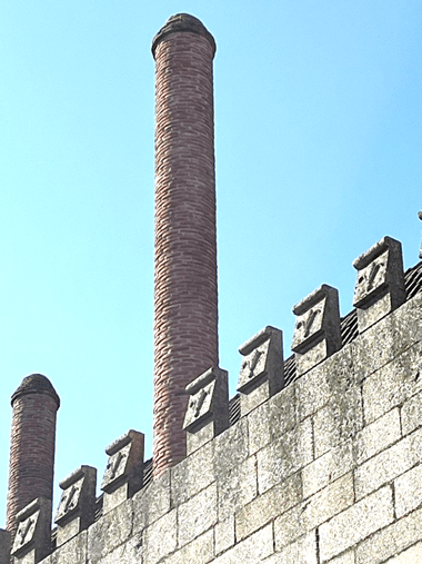 The palace was constructed for the Bragança family in the early 1400s who occupied it for about a century. In the mid-1600s, the Braganças became the Royal Portuguese family. However, the building was progressively abandoned until it was used for military purposes during the 1800s and finally underwent restoration from 1937 to 1959. Figure 12 shows the palace and the 39 brick chimneys. It is a national monument.