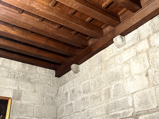 - Stone brackets that support timber framing (Figures 21 and 22). These are used interior and exterior.