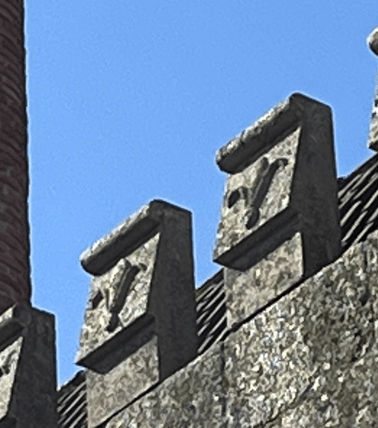 The parapets are quite interesting. Each one is 18” thick, 5’-4” tall, and 28” wide. They adorn the walls and the towers (Figure 10). Figure 11 shows a close-up. The lifting holes are visible on many stones. There is no anchorage for the stones; they are only mortar bedded.