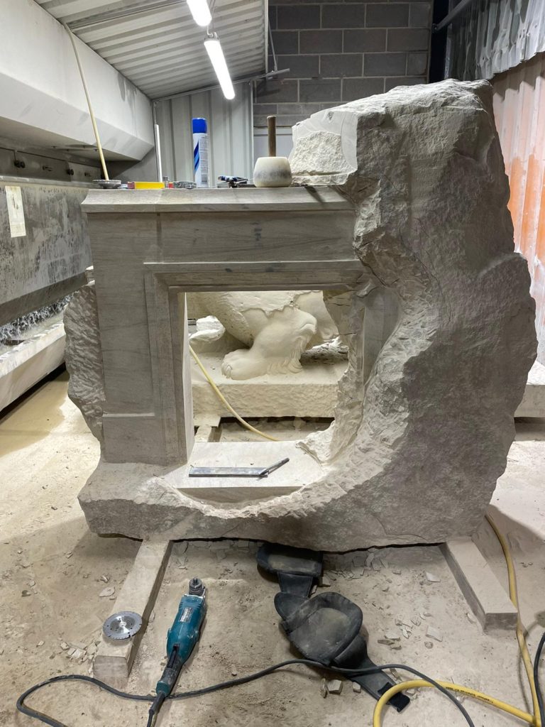 You always see similar fireplaces and variations of that, but they seem to follow the same pattern. I love history and I love architecture so I had visions of Petra in Jordan, ancient things that come straight out of the cliff spaces. I wanted to do something like that. It’s kind of timeless and it looks almost like a fossil or something from 1000s of years ago and I love it. There are so many more ideas I would like to do. I’ve got all sorts of huge doorways carved and fireplaces and all kinds of things in different stones.