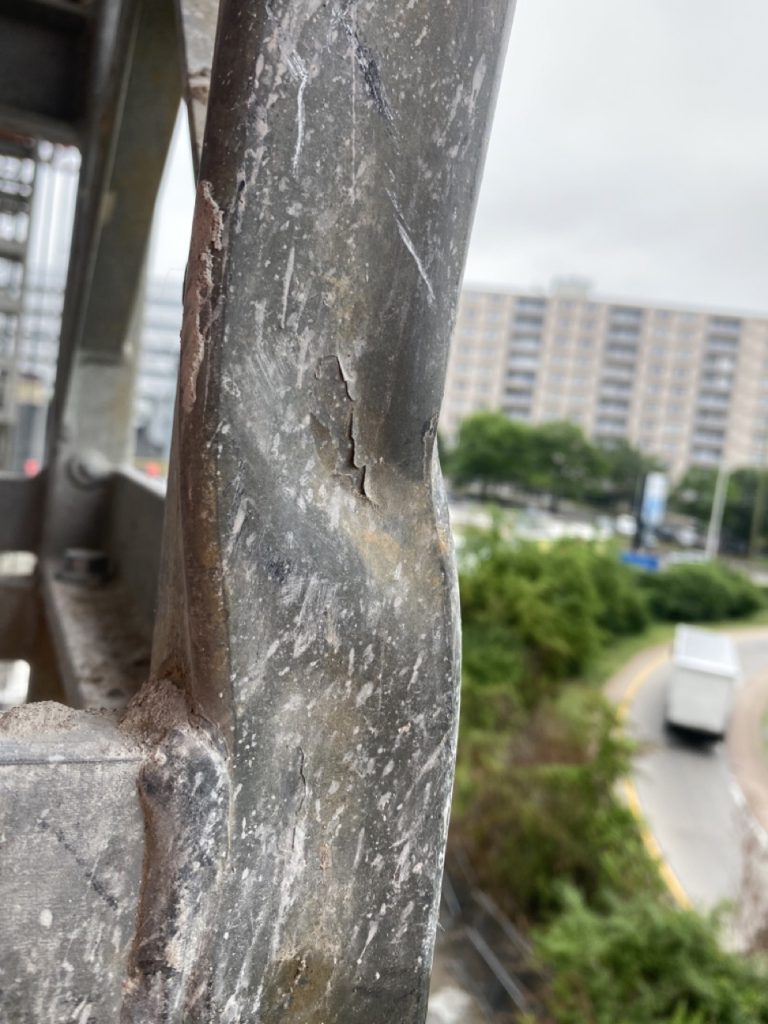 Corrosion (Figure 3) has become a hot topic, as it should be, in recent years. This should probably be the topic of an article by itself. Accidents due to corrosion have brought this to the forefront. Some manufacturers have developed a policy for inspection, some including ultrasonic thickness testing. It is important that you follow your manufacturer’s ultrasonic testing requirements and document retention. While these guidelines should be worked into an inspection/maintenance program, I have yet to see a structural member that didn’t pass that wasn’t obvious to the naked eye or members with interior structural corrosion that didn’t have exterior corrosion. The moral of this lesson is that a structural member that is corroded to the point that it doesn’t meet the manufacturer's specifications will be visible to a qualified person and probably everyone else.