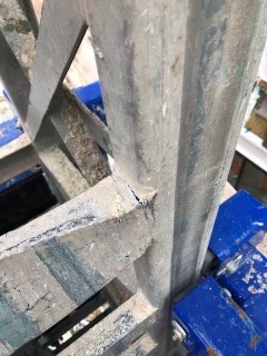 There are certain things that are similar to every scaffold: structure, fasteners and scaffold plank. Inspect the structure for damage and corrosion. A bent piece of steel may still be structurally sound if it is smooth. Tears, kinks and cracked welds are what we are looking for (Figure 1). Structural members with smooth bends that prevent the scaffold from being plum should also be removed from service (Figure 2).