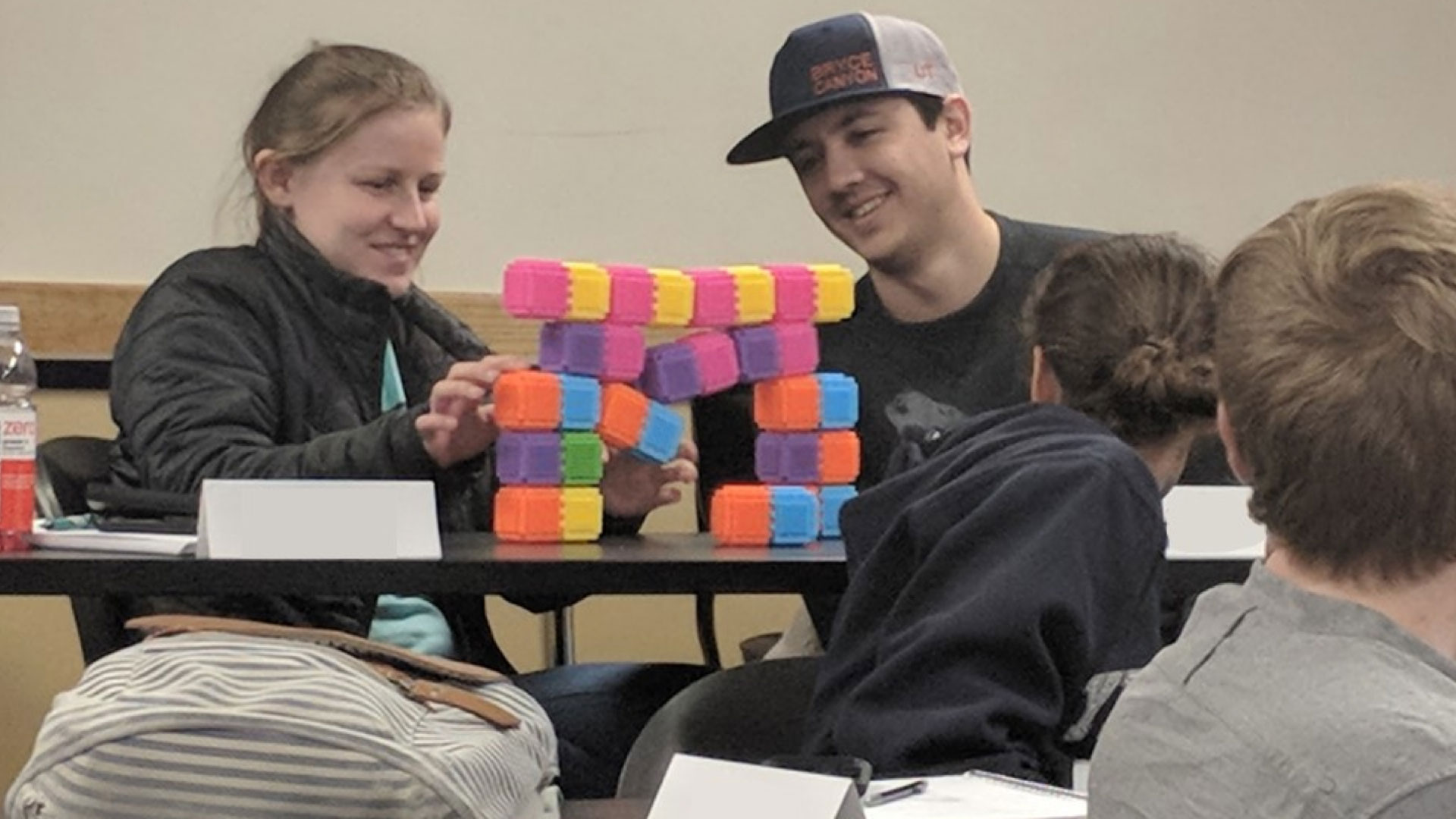Figure 3. Current Masonry Design engineering students simulating arching action with toy blocks in class.