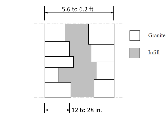 Both towers are approximately 33 square ft. and 115 ft. tall. The walls are constructed of granite-face stone, and rubble fill with loose stones and silty soil (Figure 4). The interior stairs and landings differ in each.