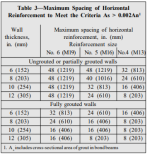 Table 3 – NCMA TEK 10-03 (Courtesy of Concrete Masonry and Hardscape Association)