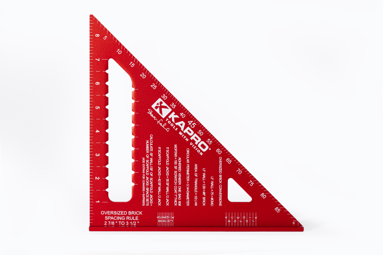 Fechino Files: Masonry Square Words: Steven FechinoI hope this article finds you finally cooled down from this hot summer. Everywhere I went felt hot and sticky, well, except for Bozeman, MT. When you are in Bozeman, everything is cool.I have been working as a laborer, sawman, brick washer, and bricklayer on my daughter’s home. I am about three full days from completion. We all know how good it feels to see the light at the end of the tunnel. Anyways, the north and south walls were finished and toothed. All I had to do was connect the two walls.Here is the thing: in 28 feet of wall, I had a four-foot difference in grade with a footing that was poured about as badly as one could be poured. (Not saying I poured it, but it sounds like something I would do.) Nothing was flat, and there were no steps. I spoke with Bryan Light and Alonzo Lewis (two of the world’s best craftsmen) to see if either of my mentors had a bit of wisdom they could share. Their answers were useful but unexpected.Bryan and I discussed laying uphill from the low part of the grade to the bottom toothed brick. I would use the first course of the lowest brick on the low toothed side and just lay level until the brick ran out of height. Alonzo instructed me to lay from the top down. He basically said to do the same thing, though I had a hard time making his method work with such a rough footing. I tried to lay both ways and found it was easier to stay on bond for me going uphill. As the course died into the slope, I had to set a pin so I could easily fill in the coursing from a lead I had built on the low side.I was slow, but once a few courses went in, I picked up speed and it went well. I will never brag about my skill as a bricklayer; I am a student of the trade. When I decided to set pins, I had to go into my shop and find a few. I ended up finding pins from companies that were in business in the '80s. Lonestar was one of the more popular companies whose pins I found. Pins were hard to come by for many years. It is good to see a few companies handing them out again. We all know pins and twigs only hit you in one of three places when they fly off the wall: eyes, knuckles, and, um, well, I should have quit typing a second ago.The Masonry SquareWhen I was talking to the folks at MASONRY Magazine, a question about an article I wrote last year came up, and it was approved that I provide more detail about a tool I discussed. The tool in question was the Masonry Square made by Kapro Tools and retailed by Bon Tool. The Masonry Square is the only tri-square designed for both residential and commercial masons in one tool. The square will still fit in the toolbox or tool bag as it is larger than a framing square at nine inches.The tool was designed for uncomfortable layout situations where you may need to get down into a hole or between two large objects. It will simplify the coursing coming out of the ground because it is made from anodized aluminum and will not flex like a stick rule and frustrate you. The square has many other features, such as a rigid pencil guide on ¼-inch increments to mark blocks and other pieces of material before going to the saw table.The sides of the square have portions of the modular spacing rule, oversize spacing rule, and the spacing rule on three different sides of the square to simplify layout when you may only have one of the rules handy that you need for layout.Another benefit of this tool is that it has material and equipment conversions for both residential and commercial work based on old-school methods for modular and oversized brick. The conversions are close and work to calculate specific items needed to support a project. The square is set up where one side is based on commercial materials and the opposite side is based on residential materials.The Mason Square is really handy for an apprentice, a young foreman, or a journeyman as the conversions offer information for figuring scaffolding, layout of corners, mortar and sand amounts, and even wall ties and wall wire. They cover almost everything needed to calculate a small change order or assist with getting enough material to wrap up the week. The tool can be used to calculate cutting rakes, finding plumb, and turning radius for arch templates.The Mason Square will be part of the Mortar Net Solutions Masonry Apprentice Scholarship, and each student that receives a scholarship will have one in the bag and the opportunity to show it off in the field.Give Bon Tool a call and order one. You may not use it for everything, but after you get used to it, you may find you use it more than you thought you might. I did and I am glad I did.