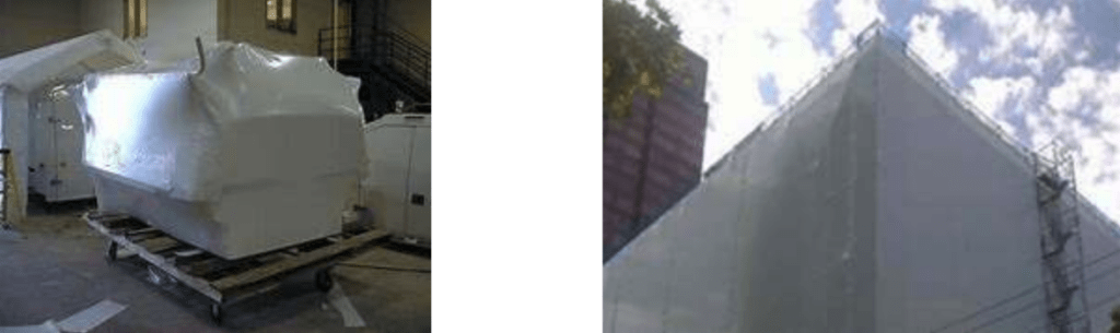 Left: Figure 17 – Shipping wrap Right: Figure 18 – Scaffolding enclosure