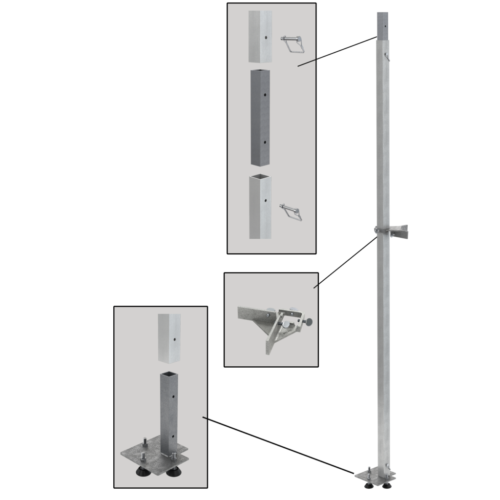 Developed in the field, this system has no height limitation where the contractor can add poles to raise the system to a higher location. This system becomes limitless and is ideal for block work in high spaces like multistory buildings and elevator shafts.