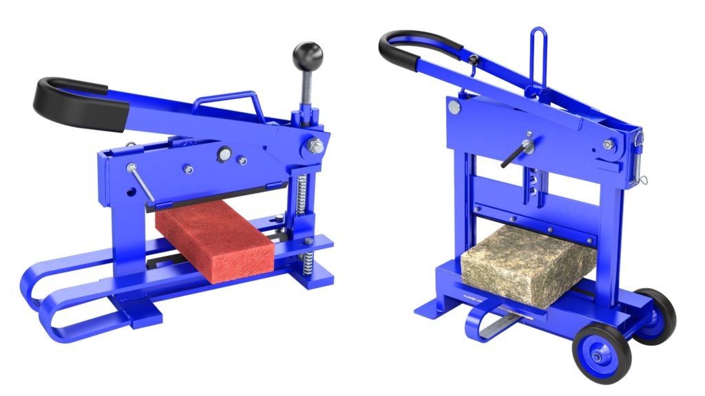 These splitters both function similarly in use. To adjust initially to the block or brick size, use the pull pins on either unit. Then once close to the cutting surface, use the fine-tune adjustment pins on the top of either splitter to have the blade meet the block or brick and the handle elevated at a 45o angle. Next pulling the handle puts the pressure on the base of these units and gives a natural split on either block, brick, and/or pavers. These units both provide a simple and rugged design and still maintain as fully functional and portable. While the mechanical nature and triangular blade limit front and back end maintenance, these units are also cost-effective options to saw cut (diamond blades) and other powered equipment options which tend to be higher in price. Finding a good blend between non-powered equipment and powered equipment/hand tools is the responsibility of the contractor. Understanding that the sexy option isn’t the only option splits these units from the rest.