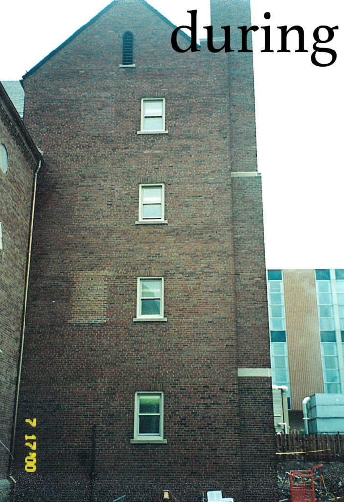 Attention is in the details for any successful project, and it is important in this Case Study that we were able to document what the newly stained brick looked like 21 years ago. The Masonry Cosmetics Team’s photography was not as advanced then as it is today, but it did capture the results of our extensive work at that time. We went back in 2019/2020 to retake pictures showing how our project still looks today. Examples are given here illustrate the before, during, and after stages of the project 21 years ago, along with current photos of that building today, proof positive of the longevity success of the Proven Masonry Stain.
