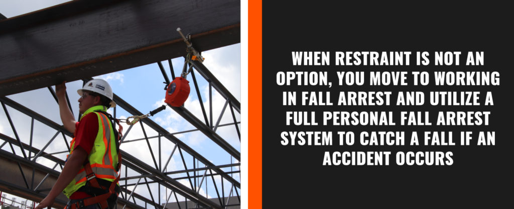 Fall arrest systems are designed to protect workers who must perform work where fall hazards exist, with a goal to utilize equipment to minimize swing-fall, freefall distance, and arresting forces to the body of the worker. A personal fall arrest system (PFAS), which includes anchorage, bodywear (full body harness), connector (properly rated carabiners and attachment points), and a deceleration device (lanyard or self-retracting lifeline (SRL)). When a worker falls, the PFAS activates, arresting their fall and preventing them from hitting a lower level or other objects that can cause injury. Fall arrest systems are ideal for areas where the fall hazard cannot be removed or protected with passive or active fall restraint systems.