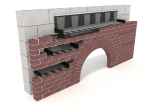 Arches can range in size; they can be tall, and they can be wide or a combination of both. Flashing an arch can typically be performed using straight pieces of flashing that begin at the lower corners of the arch and extend to a top piece that spans the center. The reason for this is that you should never have more than about three courses of brick in the wall veneer where the spans do not overlap. Placing the flat flashings is far more efficient in labor hours than fabricating a rolled flashing that would need to be installed after the first course is placed in the arch template.